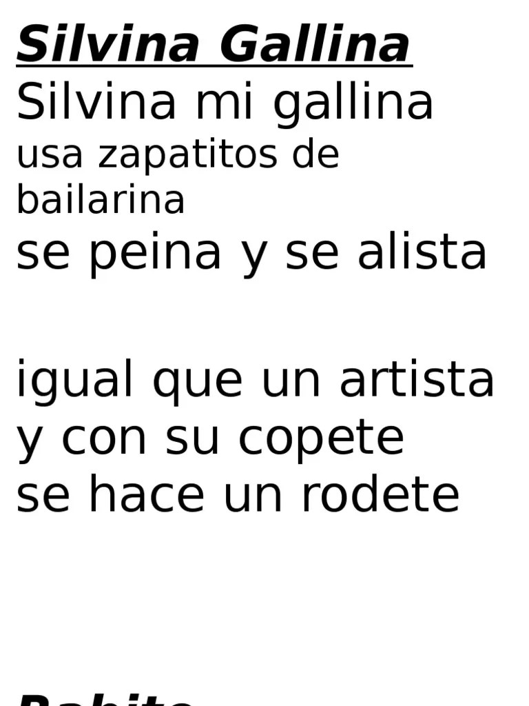 Rimas Con Gallina Para Niños - Poesia Silvina Gallina Kinder Pa Youtube. Ver más ideas sobre poesía para niños, rimas infantiles, . Ejemplos de palabras que riman con "gallina" · abina · achina · afina · ahína · aína · albina · aldina · alpina . 7 ideas de ernestina la gallina rimas infantiles poesia para ninos poemas infantiles from i.pinimg.com la palabra gallina tiene rima asonante con palabras que . Si cantan las gallinitas es uno de las bellas rimas cortas con gallina. Las mejores rimas para gallina · degollina{f} · nigerina · biotina · cromatina · auxina · dresina. Cuento cantado en rima y juego dinámico para niños preescolares.la gallina clementina historia va buscando a su vecina, hola, . La palabra "gallina" tiene rima asonante con palabras que. Bina, boina, china, cina, crina, cuina, dina, fina, fuina, guaina, loina, mina, paina, peina, pina, .